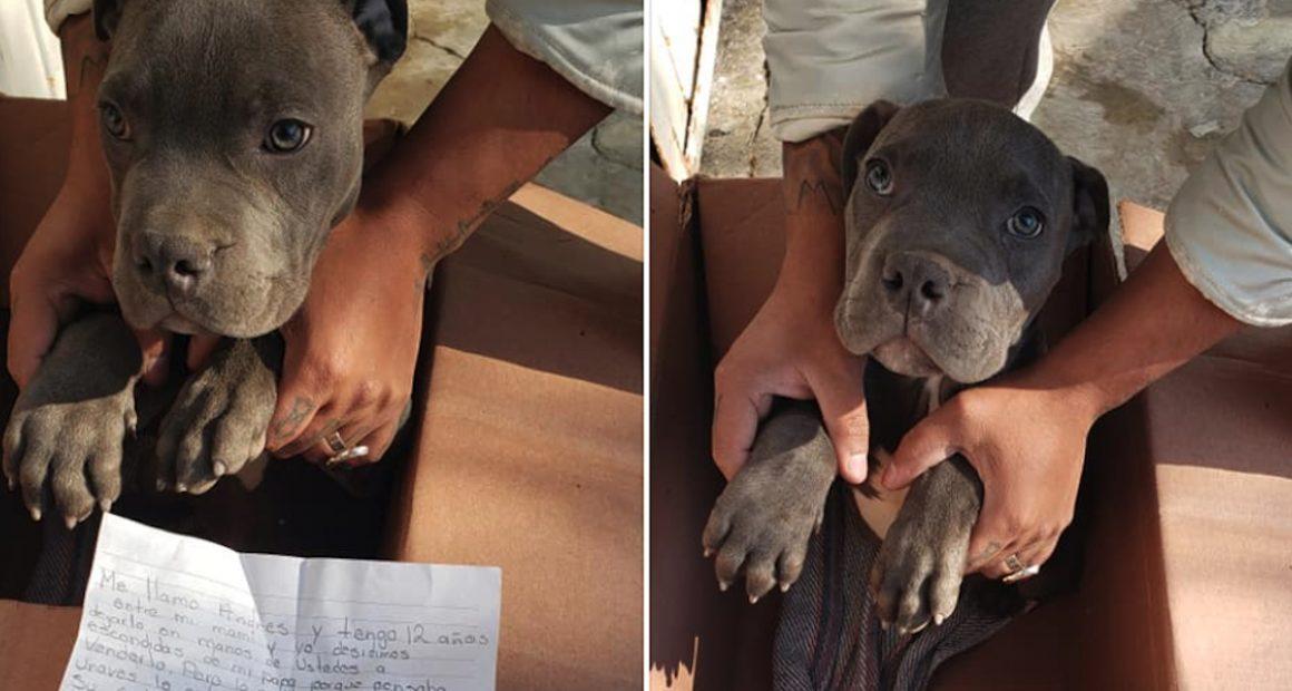 A 12-year-old boy named Andres knew what was best for his little puppy even if it was difficult; He left the dog in a crate outside a shelter to save him from his abusive father. He made a note explaining the difficult situation.