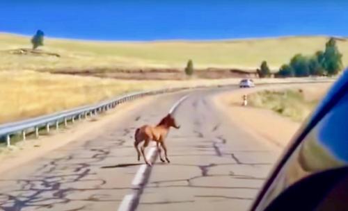The man made several attempts to approach the colt, but kept running away. Eventually he was able to stop the pony and the man was seen crouching down, carrying him and gently placing him on the railing.