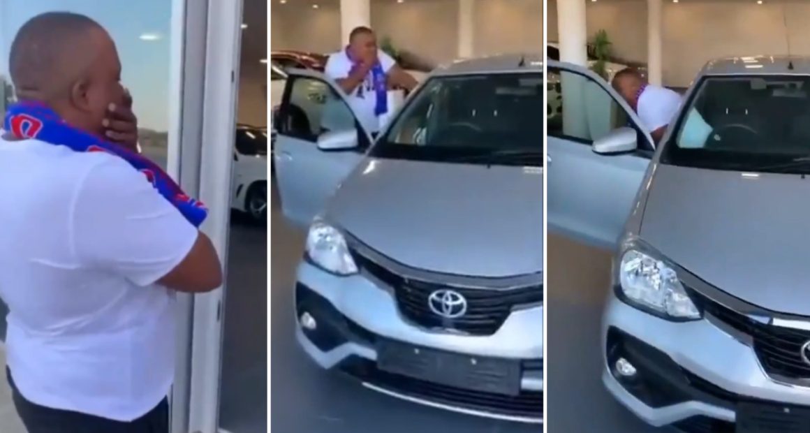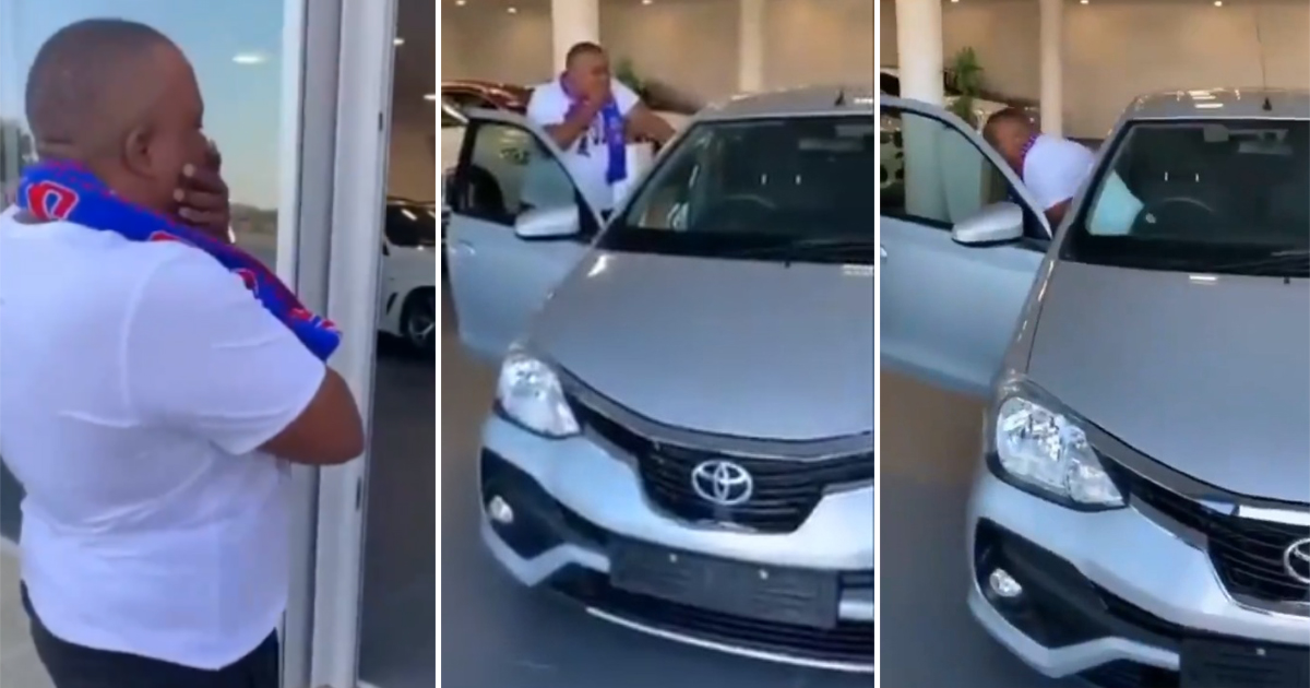 Twitter user @Asanda_Goduka posted a video of them surprising him with his new car at a car showroom, and this clip has been circulating online where he can be seen reacting happily to his friends’ heartwarming gesture .