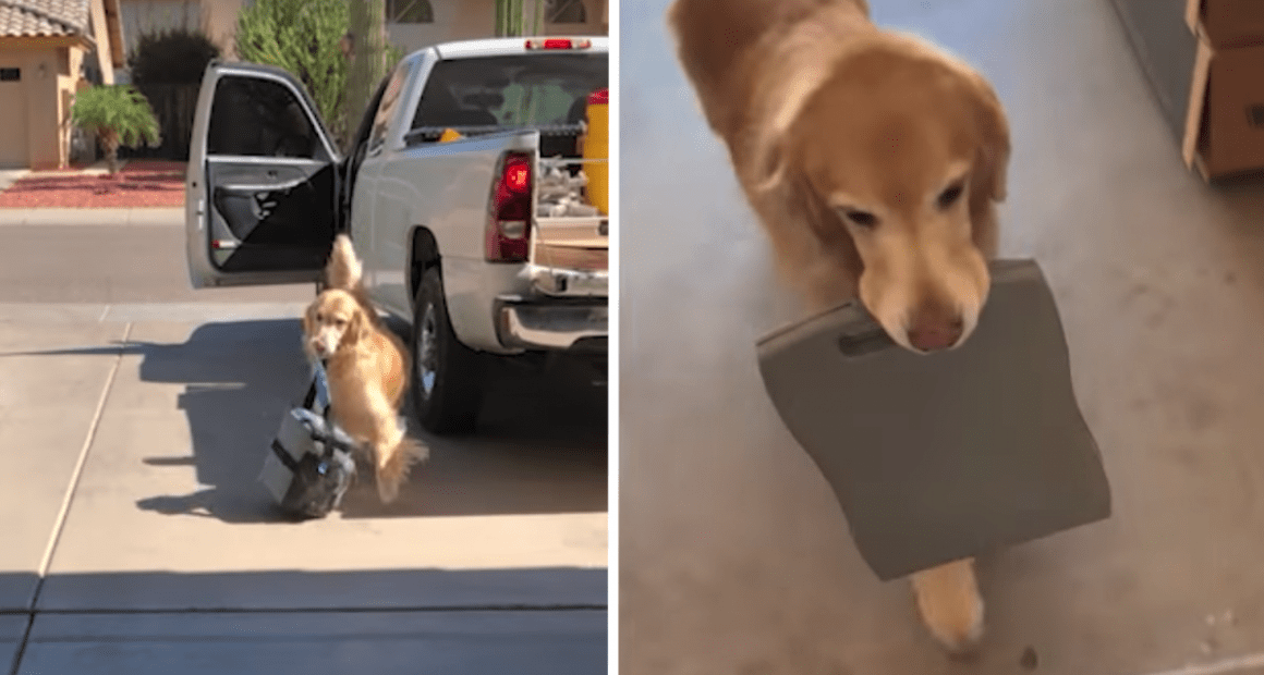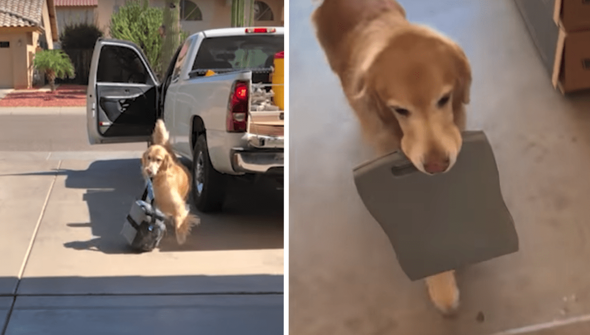 Nothing beats coming home with a dog so happy to see you. The excitement and joy they show when they see you again is one of the best feelings in the world! They run around you, wag their tails, and jump on you to plant kisses and feel where you’ve been all this time without them. And for the Golden Retriever in the video below, he’s so glad his dad is back he’s helping him with all of his stuff!