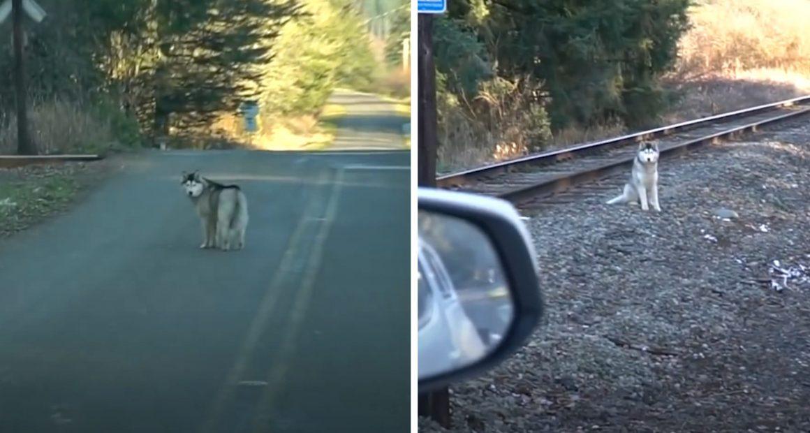 Maxx Powell was driving down the road when he spotted a beautiful Husky all alone on the train tracks. He stopped the car and got out even though he thought the dog would surely run away from him. But instead, the Husky submitted for some belly rubs and pats!