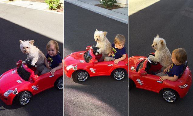 “Daisy loves driving Oliver in his car,” she said. “Yes, the car is a remote control car that I use to accelerate and stop (neither of them can reach the pedals…to the left!”