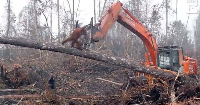 Footage recently released by Animal Rescue International shows horrific footage of an orangutan trying to fight a bulldozer destroying its habitat.