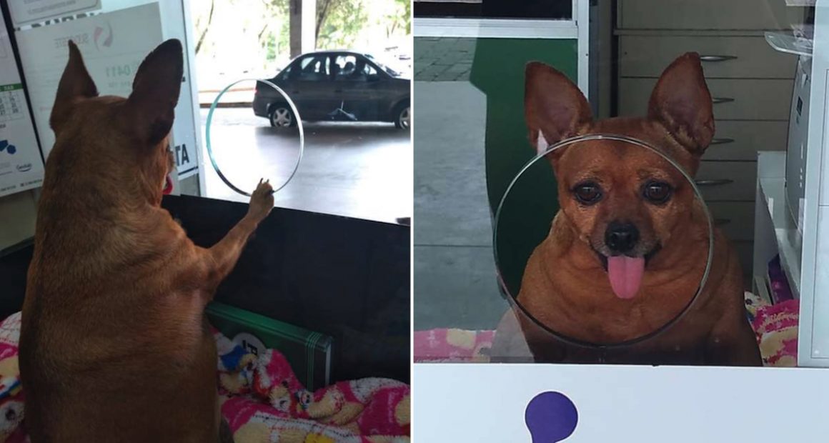Adelsionir and Mariani adopted a 9-year-old dog named Chiquita, and it didn’t take long for her to find her place in this world. They have a counter in Blumenau, Brazil, and Chiquita is the newest and best operator at the bus station.