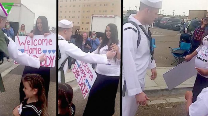 Once sure of Natasha’s sincerity, the young sailor goes into raptures and hugs his wife. Later that night, Chris’ homecoming doubled as a gender reveal party as the couple told all their friends and family that they would soon be welcoming a baby girl into their home .