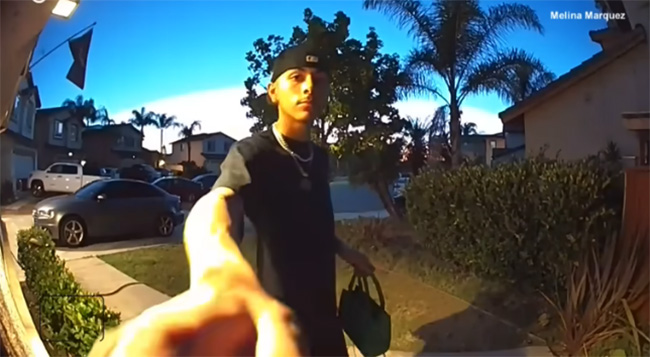 Marquis wasn’t home when Adrian arrived. He had left it with a relative at home and the interaction was captured by Marquez’s Ring Camera.