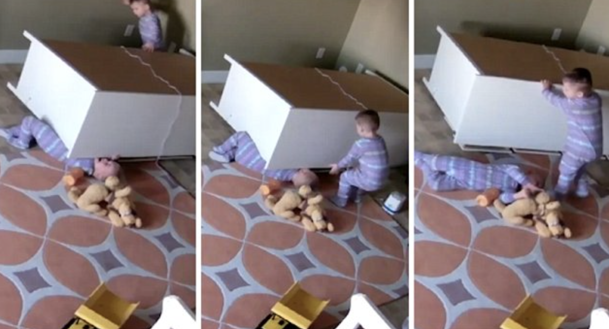 Scroll down to see the video. It’s a great lifesaver and it’s also a reminder to parents everywhere to get their children’s furniture out. No child should suffer a totally preventable tragedy!