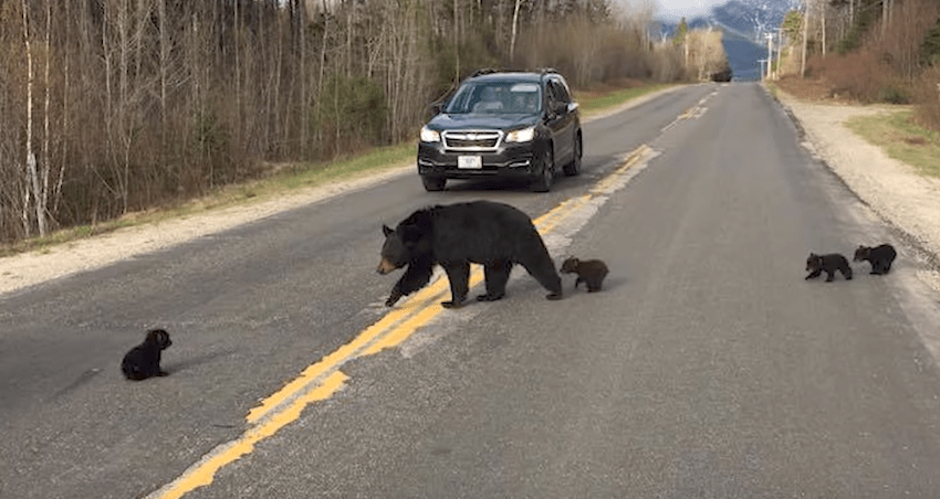 A family of bears tries to cross the road, so a policeman stops to help them. He noticed that the family was constantly coming and going and soon realized that they were trying to come back for a little one who couldn’t keep up.
