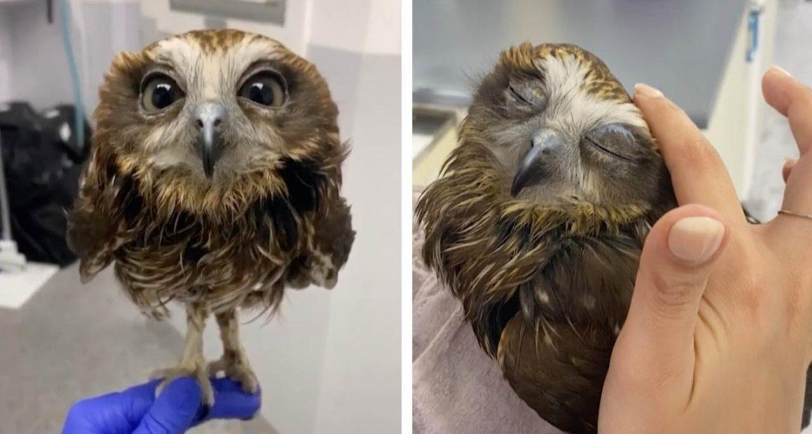The injured baby owl was taken to the vet by good people, who first bathed the animal in lukewarm water. The hapless owl ended up in a rat trap and had oil burns all over its body. The vets conclude that the animal’s burns were caused by a skin reaction to the glue from the rat trap.
