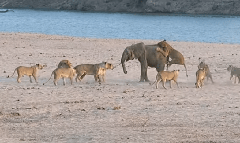 A large group of lions attacked a poor elephant but he was so ruthless that he put an end to all his attackers. See for yourself what happened and how he escaped danger.