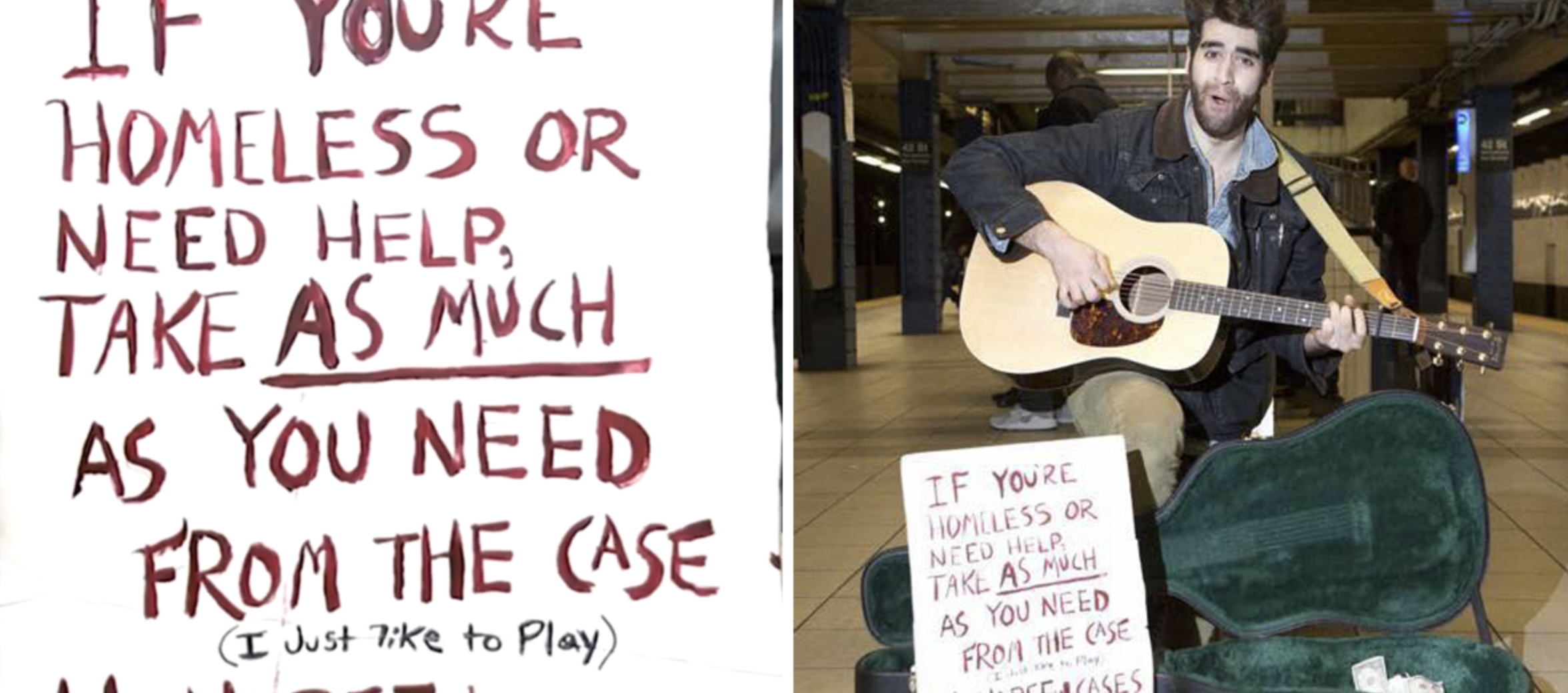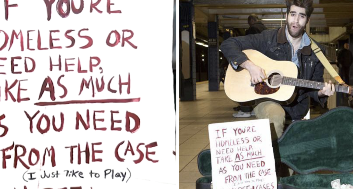 “So I go on the subway and I play 1950s rock and roll songs on the platform. People donate money. I leave my file open. I have a sign that says if you’re homeless or in need, you can take whatever you want,” Boyajian told Salon.