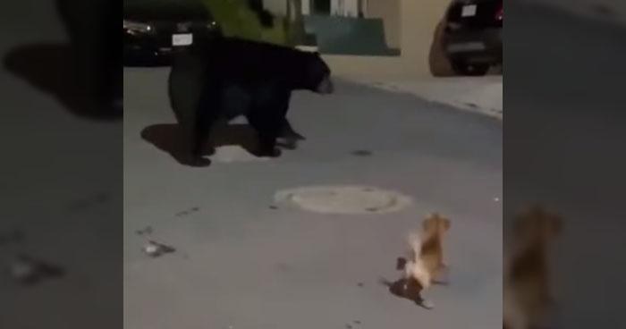 In the video, the little Chihuahua stood in front of the bear and scared him so much that the poor animal ran away. Below the video, commentators said the bear may not have been hungry.
