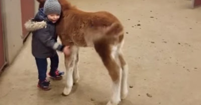 Thordor Braga is a 4 year old boy who was with the mare every day when she was pregnant. Before the little pony, he stayed with her in the barn, stroking her and making her feel comfortable.