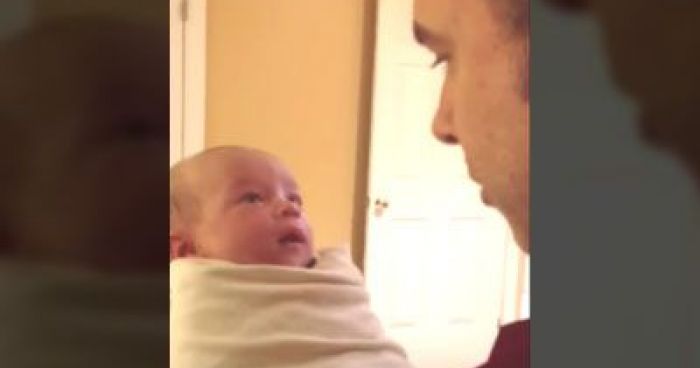 A pretty baby girl, one-month-old, well swaddled, seemed to be going through difficult times. I endured a tearful fit and my father tried to get in touch with his beloved daughter. Mom recorded their sweet conversation and happily shared it online for all of us to enjoy.