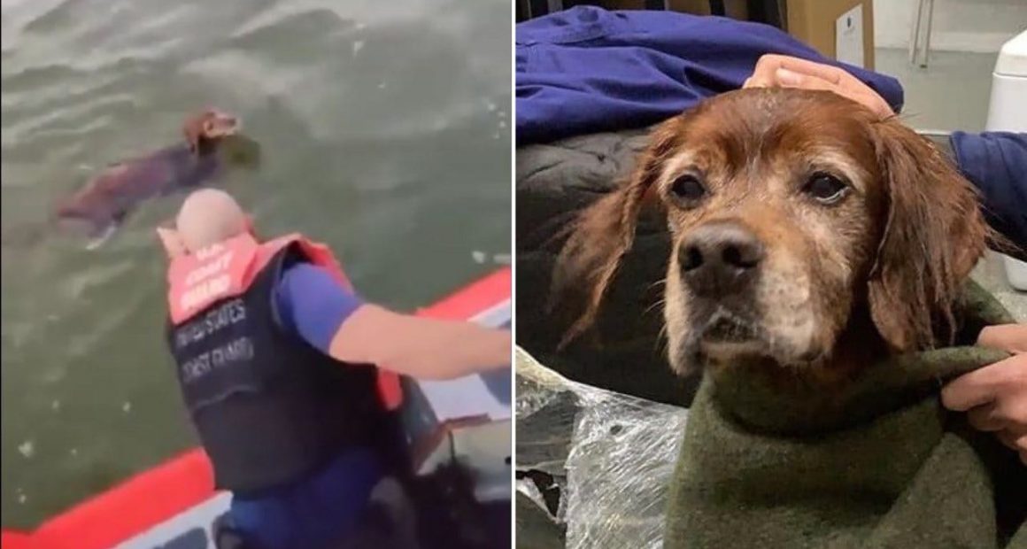 The US Coast Guard station in Fort Myers Beach received an alert about a lonely old dog in the middle of the sea, the old dog has been there and knows how long and in great distress, so they set sails to the rescue