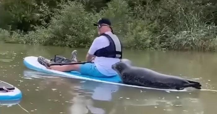They were joined by a seal on the river, and the video has already hit the internet.