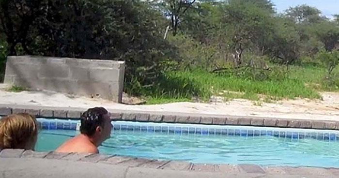 So when these guests at Elephant Sands Lodge in Botswana saw a huge African elephant jumping towards them, they kept silent and made the animal as comfortable as possible.