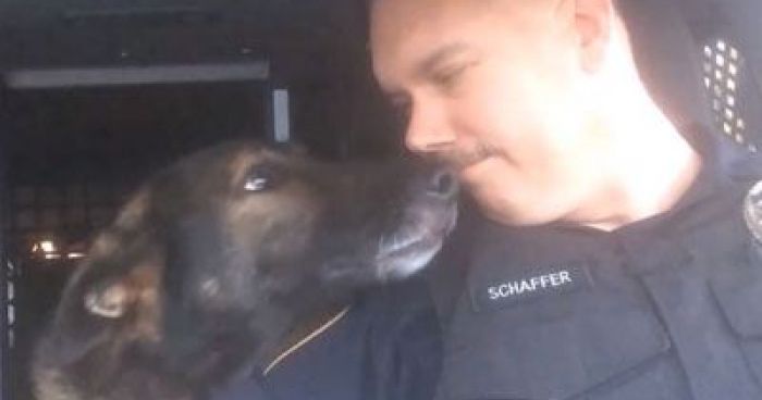 After eight years and a day in the business, it’s time for the trusty K-9 to hang up his badge forever. In a sweet, bitter, and moving moment captured on camera, Schafer sends the puppy the last call.