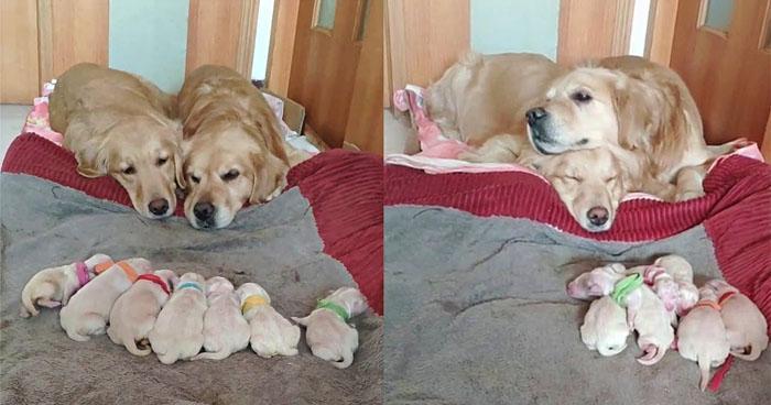Golden Retrievers, along with the owner, have all praised the arrival of new members to the family these days. The dog gave birth to six puppies and the owner captured some cute scenes on camera.