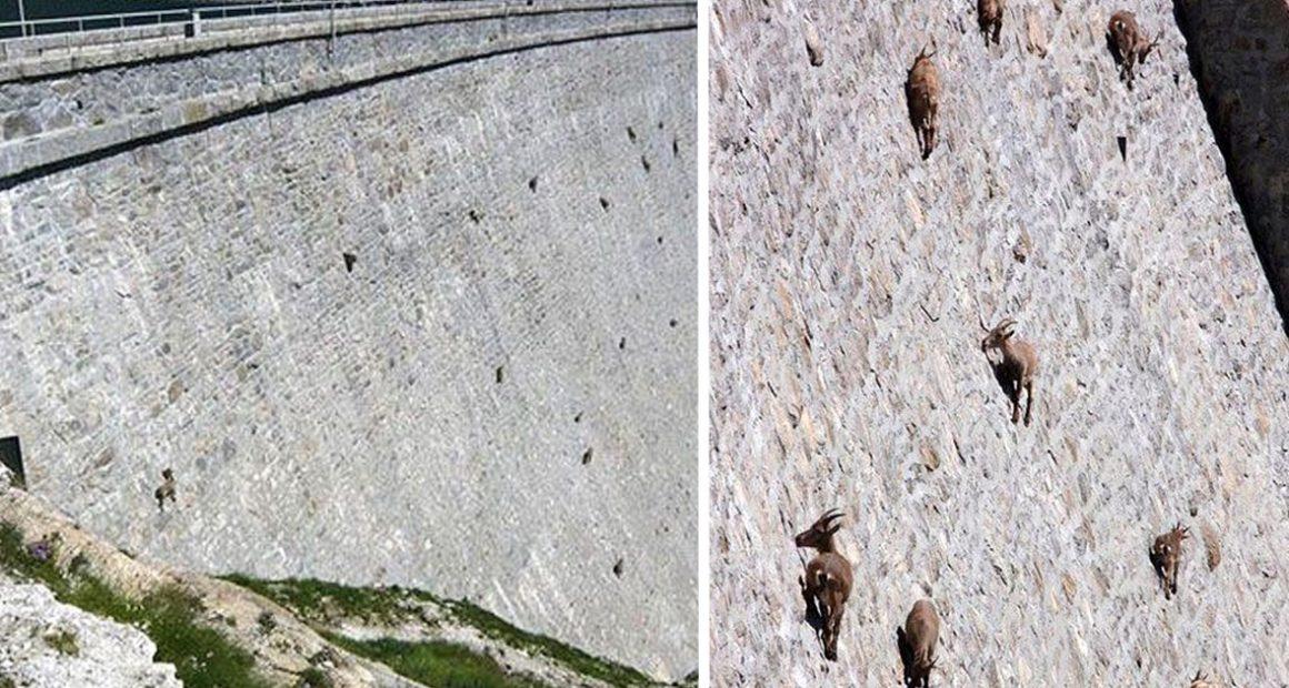 A herd of Alpine ibex lives near a dam in Gran Paradiso National Park in northern Italy and they have started climbing the brick dam more often, to the amazement of locals. Park officials soon discovered that they were there grazing and licking ancient stones for their salts and minerals.