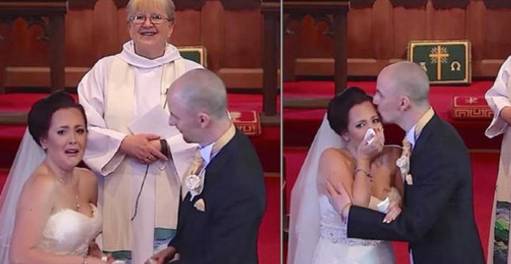 Lizzie and Olly stand facing the altar. They hear a knock on the back, and it gets everyone’s attention. It seems that Liz didn’t notice anything until Olly showed her. Liz turned behind her and burst into tears.