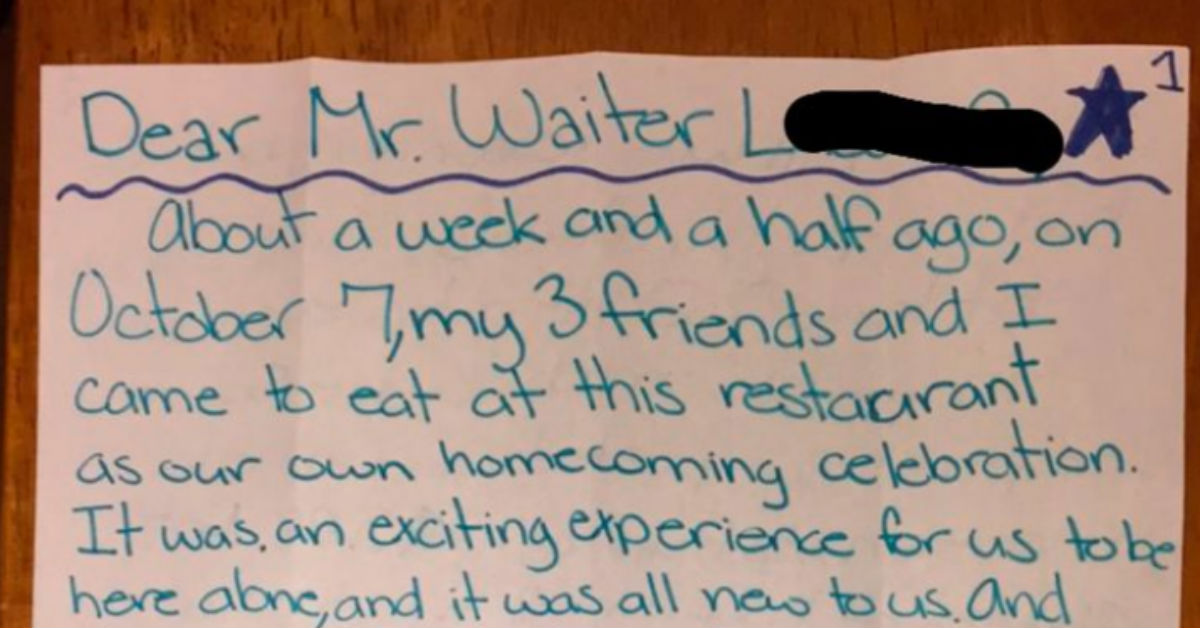 Despite this incident in 2018, the letter was a testament to teens’ mindfulness and growth. Not to mention the importance of tipping the waiters well! Here is what the letter said: