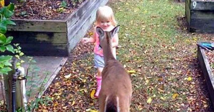 When dad and his cute little girl stepped out into the garden, they had no idea that a curious creature was waiting for them. They turned the corner and saw a little doe watching them! Instead of escaping, the deer decides to have fun with the little girl!