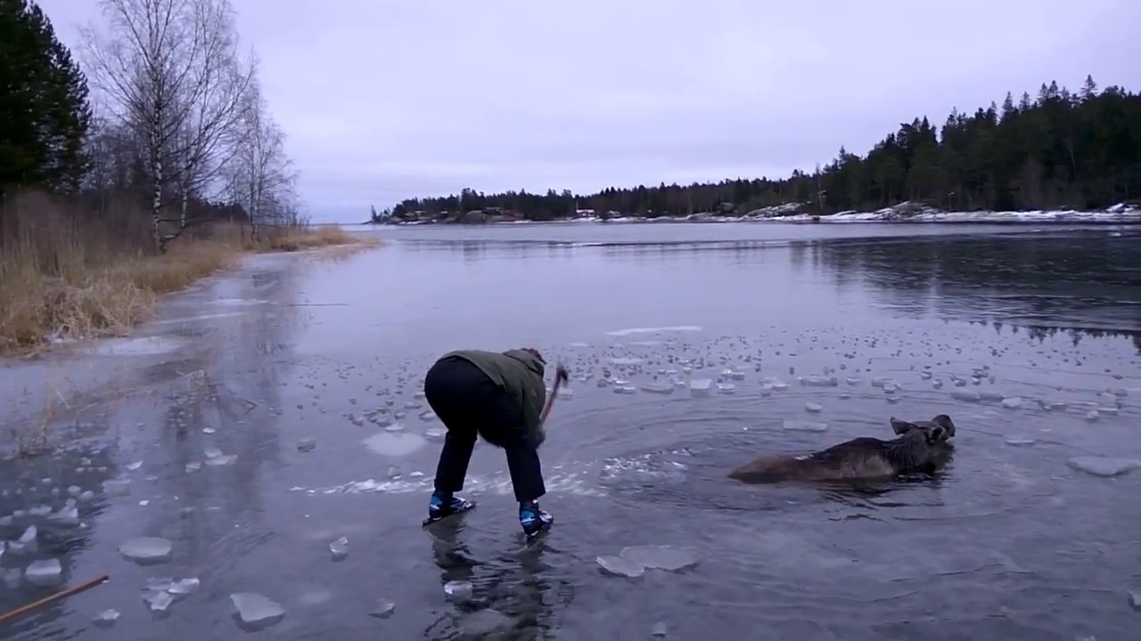 My partner, Sigrid Sjösteen, scrambled to dig a path into the shallows, where they could reach the bottom and get out. We took turns cutting for 30 minutes before the moose were out of danger.