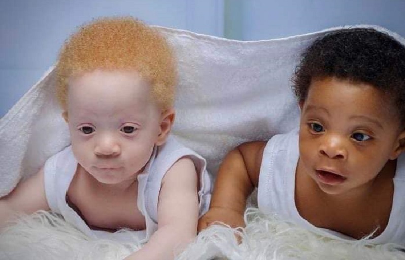 Both of the children of Stacy and Babajide, who are black and live in Lagos, are albinos. Because of their strikingly different appearances, the cute twins often draw attention wherever they go. Daniel looks like his 5-year-old big sister Demilade and has dark skin and black curly hair, while David is shockingly white with pale skin and golden locks.