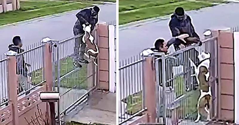 The video you are about to see proves that you should always keep an eye on your dogs even when they are surrounded by a high fence. In fact, the would-be thief in this video climbs over the fence and tries to lure the pit bull there. The dog, who was at first happy to see the man, began to struggle as the man tried to pull him by the collar.