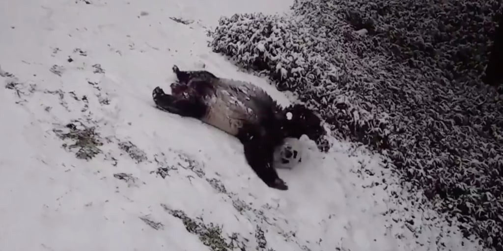 In recent days, they have witnessed a new dose of snow there, and one of the many pandas has been in awe of the joys of winter.