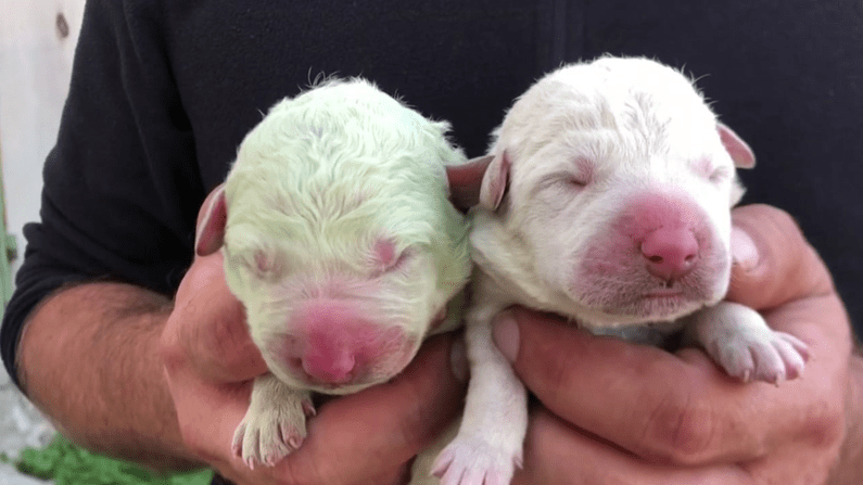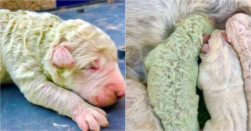 There is no rule in nature. It is certainly true. You can find many animals whose traits can shake the world a little. The cute newborn puppy in this story is a prime example. This cute little guy was born with green fur, so his owners immediately named him Pistachio. Continue scrolling!