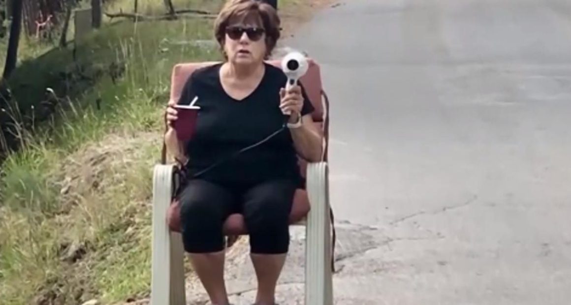 After discussing the options with others, they came up with the idea of ​​seeing her sitting in a chair on the road with a hair dryer to trick people into thinking he was a fast reader.