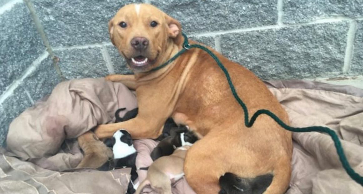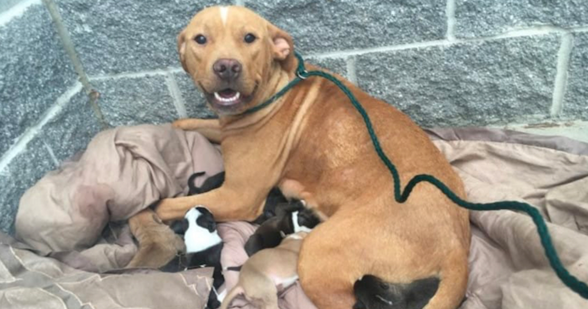 Thrown at the door of the Sacramento SPCA was a pit bull and 10 of his newborns.