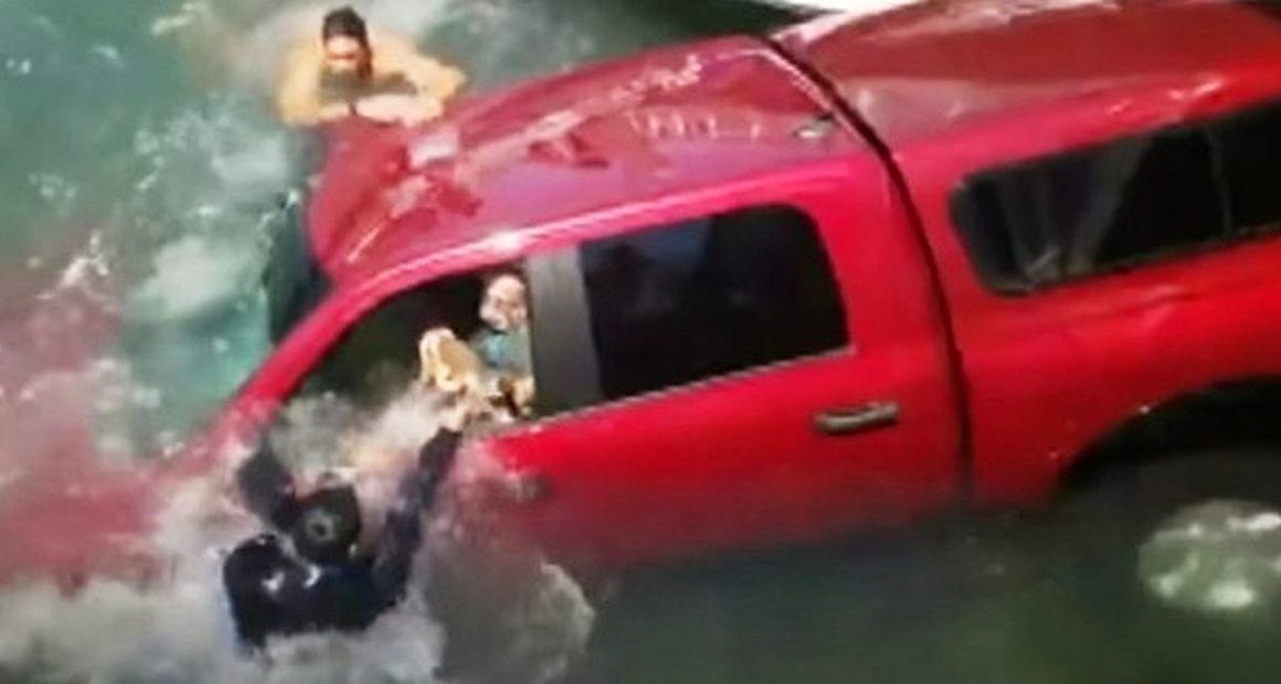 A group of good samaritans has been hailed for their heroism after they rescued a woman, her son, and their pet dog from their sinking car in a California marina. The incident was captured in a viral video that showed the vehicle quickly filling with water after it plunged into the water.
