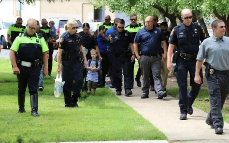 Jackson, age 4, and his two older brothers from the family of four were escorted to their first day of school in August by over two dozen officers from the Amarillo Police Department in Texas, along with their mother, Jessica Scherlen. The cops were a surprise for Jackson and his family.