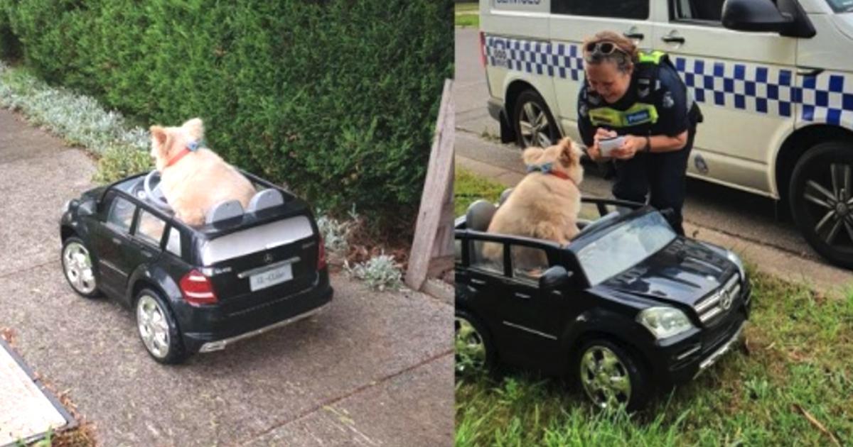 Who can blame this pup for taking a ride in his tiny Mercedes without a license? Not the Victoria Police Department!
