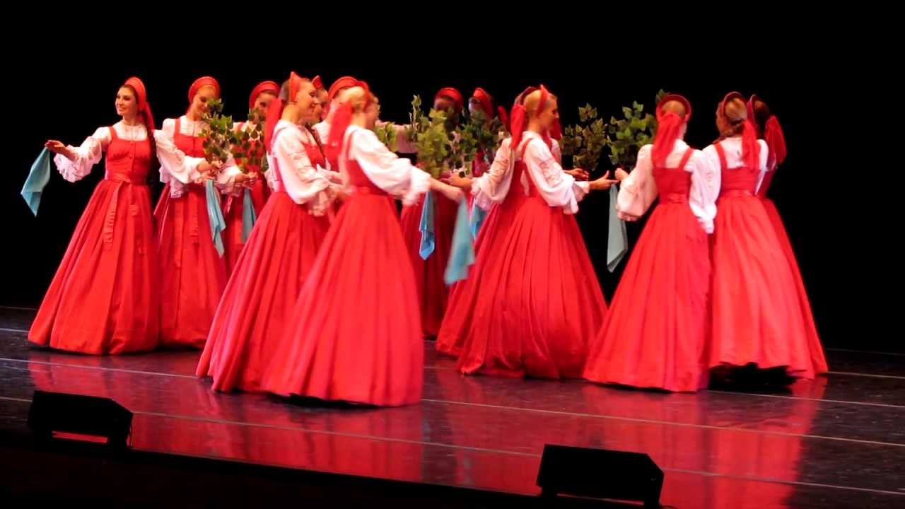 Sixteen ladies dressed in red outfits and holding a bunch of flowers enter on stage and surprise the audience with a dance never seen before. Their beautiful traditional Russian dresses mesmerized the audience and captured their attention within a few seconds of their appearance.