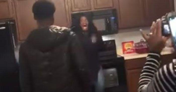 Brittany Pettis helped her brother give their mother an unexpected Christmas present and her shocking reaction was priceless.