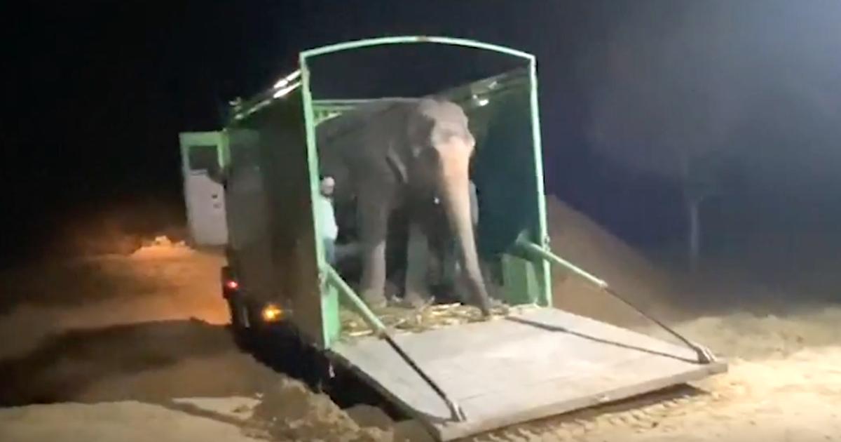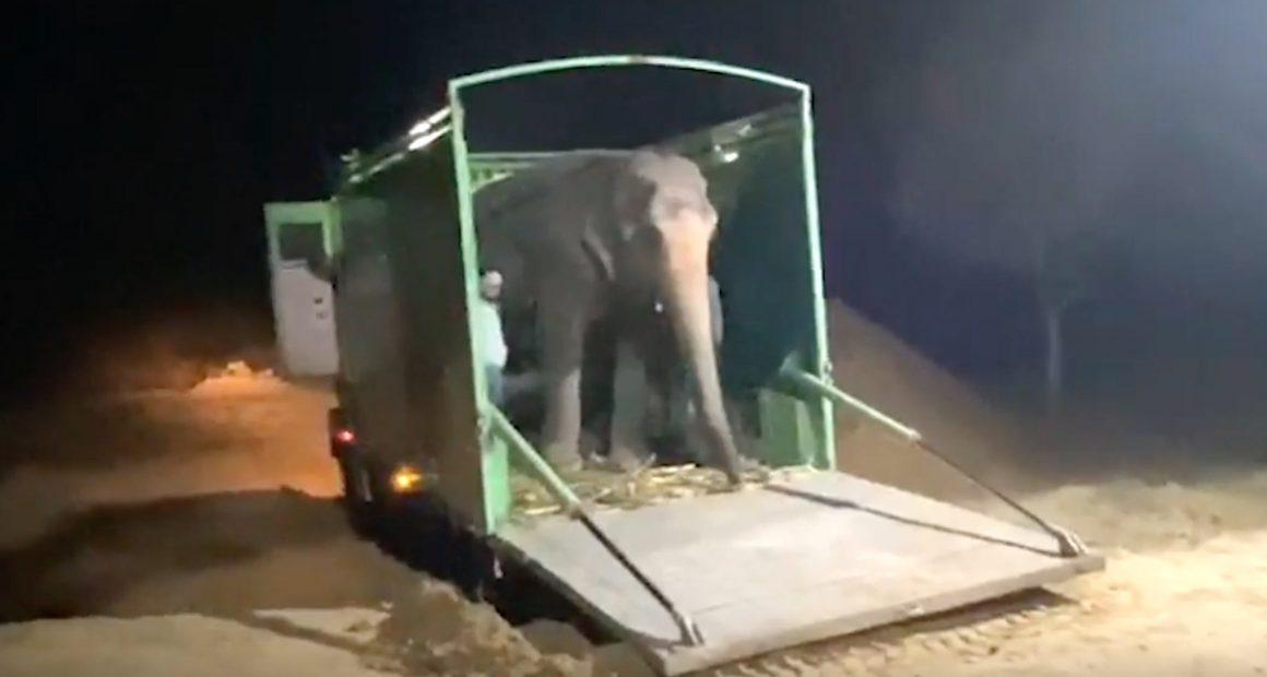 Wildlife SOS steps in to rescue and release Karma, and in the video below you can see her exiting the trailer for this freedom. She is blind and will undergo a full medical examination and treatment and will live her days in this elephant hospital. Watch as she tries to make her way step by step through this new life.