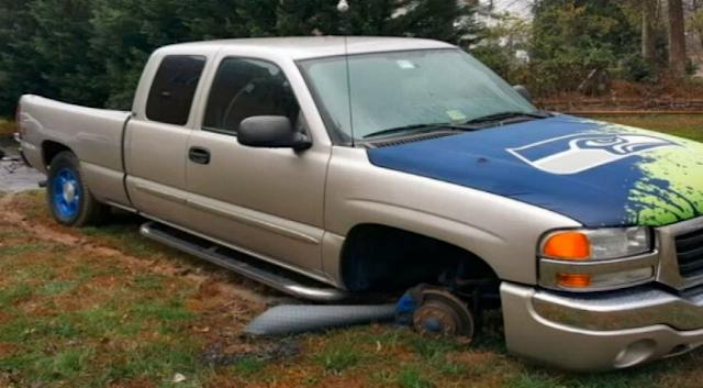 Charlotte started to lift the truck and Eric described how he felt it going up and a few seconds later he came out from under it!