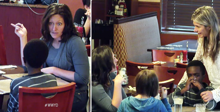 The social experiment below is entitled What Would You Do and it features a foster mom who undermines her foster son and on the other hand favors her biological daughter while serving dinner.